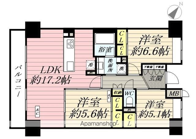 | 間取り詳細 | LDK17.2 ・ 洋6.6 ・ 洋5.6 ・ 洋5.1 | 総戸数 | 121戸 |