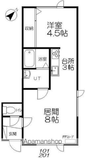 | 設備 | バス・トイレ別、フローリング、閑静な住宅地、24時間ゴミ出し可、ガス(都市ガス)、暖房、灯油ファンヒーター、シャワー、独立洗面台、シャンプードレッサー、室内洗濯機置場、室外洗濯機置場、専用トイレ、ガスコンロ可、トランクルーム、クローゼット、押入、シューズボックス、屋外物置、インターホン、二重サッシ、照明器具、郵便受け、角部屋 | ||