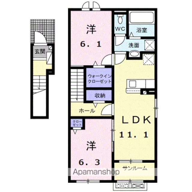 | 向き | 南 | 構造・種別 | 木造/アパート |
